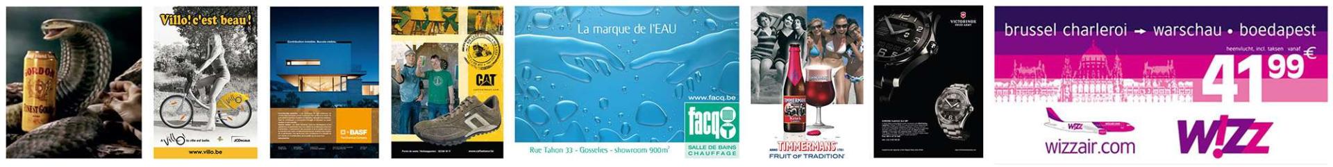 Clients: Basf, Breitling, Caisse prive?e banque, Caterpillar, Corona, Eastpack, ING, Gordon beers, Guinness, Redbull, Timmermans, Villo, Wizzair and many more…